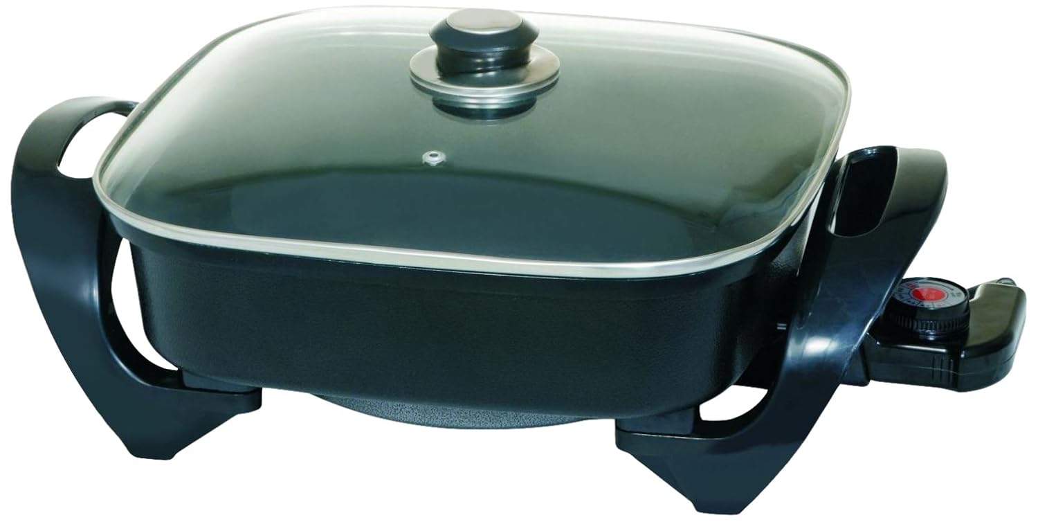 - See-thru glass lid for easy viewing, Non-stick coated Aluminum Pan, 310 Watts of Power Consumption